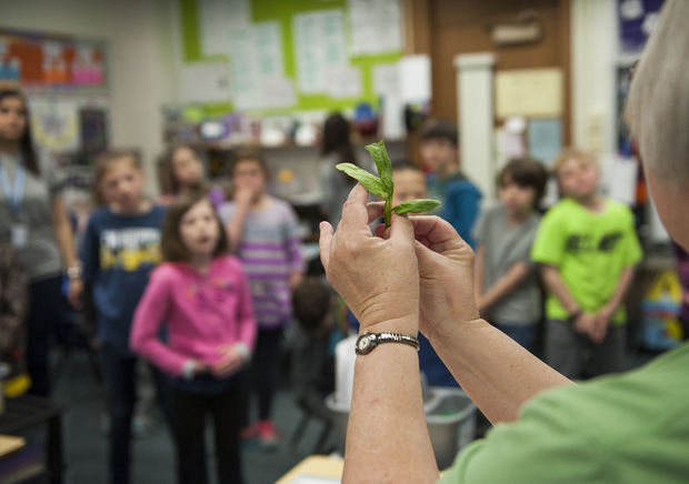 Kelsey Monroe’s third-graders were engaged March 18 at Midway Heights Elementary School. The topic was food, specifically spinach. Yes, spinach, the vegetable that makes Popeye big and strong. Except this spinach didn’t come from a can.