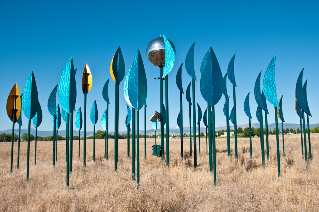“The Spirit of Longmont” This installation — created by Rafe Ropek in 2009 — can be spotted on southwest Diagonal Highway. The 48 leaves alternate from yellow to green to represent Longmont’s agricultural roots, while the sphere in the middle calls to the future.